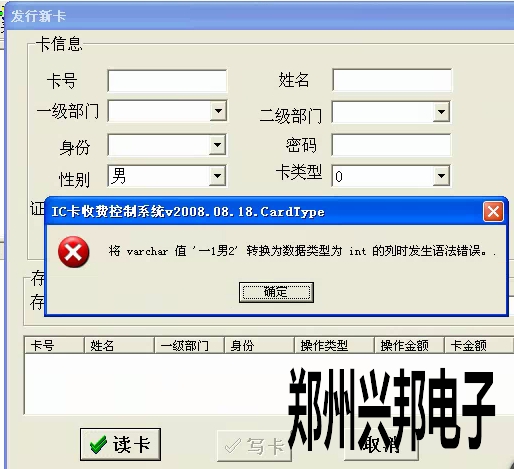 局聯(lián)網(wǎng)一卡通軟件發(fā)行新卡的時(shí)候出現(xiàn)語(yǔ)法錯(cuò)誤