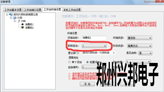 終端參數(shù)類(lèi)型的選擇:打開(kāi)設(shè)備設(shè)置,在工作站終端設(shè)置里,添加終端里可以選擇參數(shù)組名,或者添加終端后也可以修改選擇的參數(shù)組名。