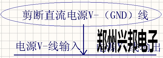 將一根直流電V-線剪斷,一側(cè)為直流電V-的輸入,另一側(cè)為直流電V-的輸出;如下圖1-4所示