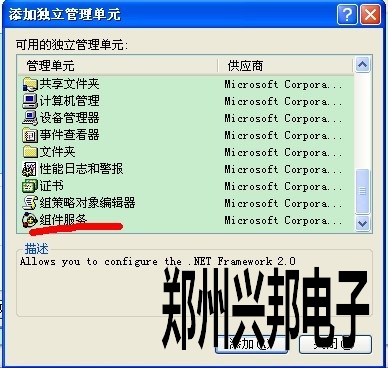 把光標(biāo)點(diǎn)一下組件服務(wù),點(diǎn)添加,然后關(guān)閉,如下圖