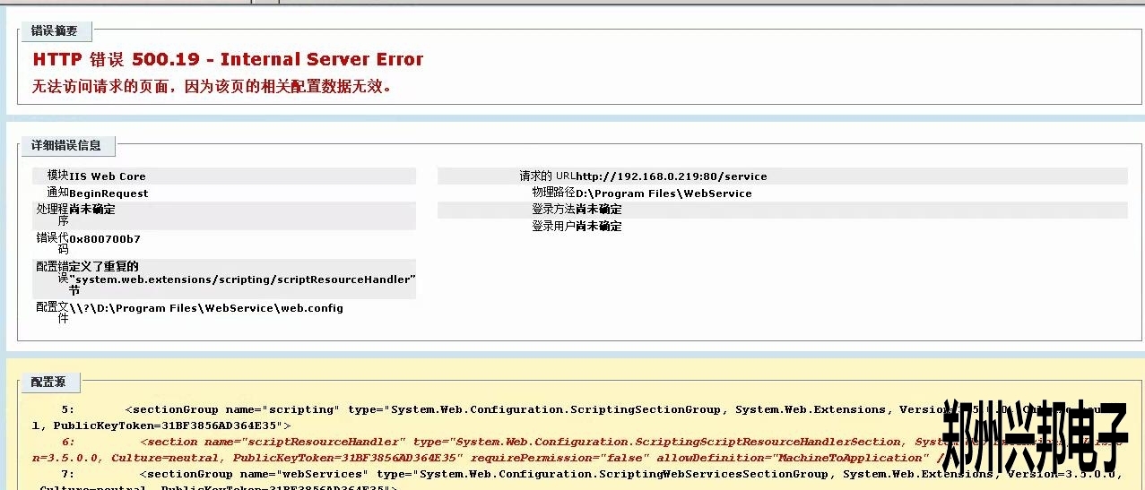 客戶使用的互聯(lián)網(wǎng)一卡通食堂售飯機,在裝好軟件后配置有誤,瀏覽service時提示應用程序中的服務器錯誤.出現(xiàn)這種情況是怎么回事呢?